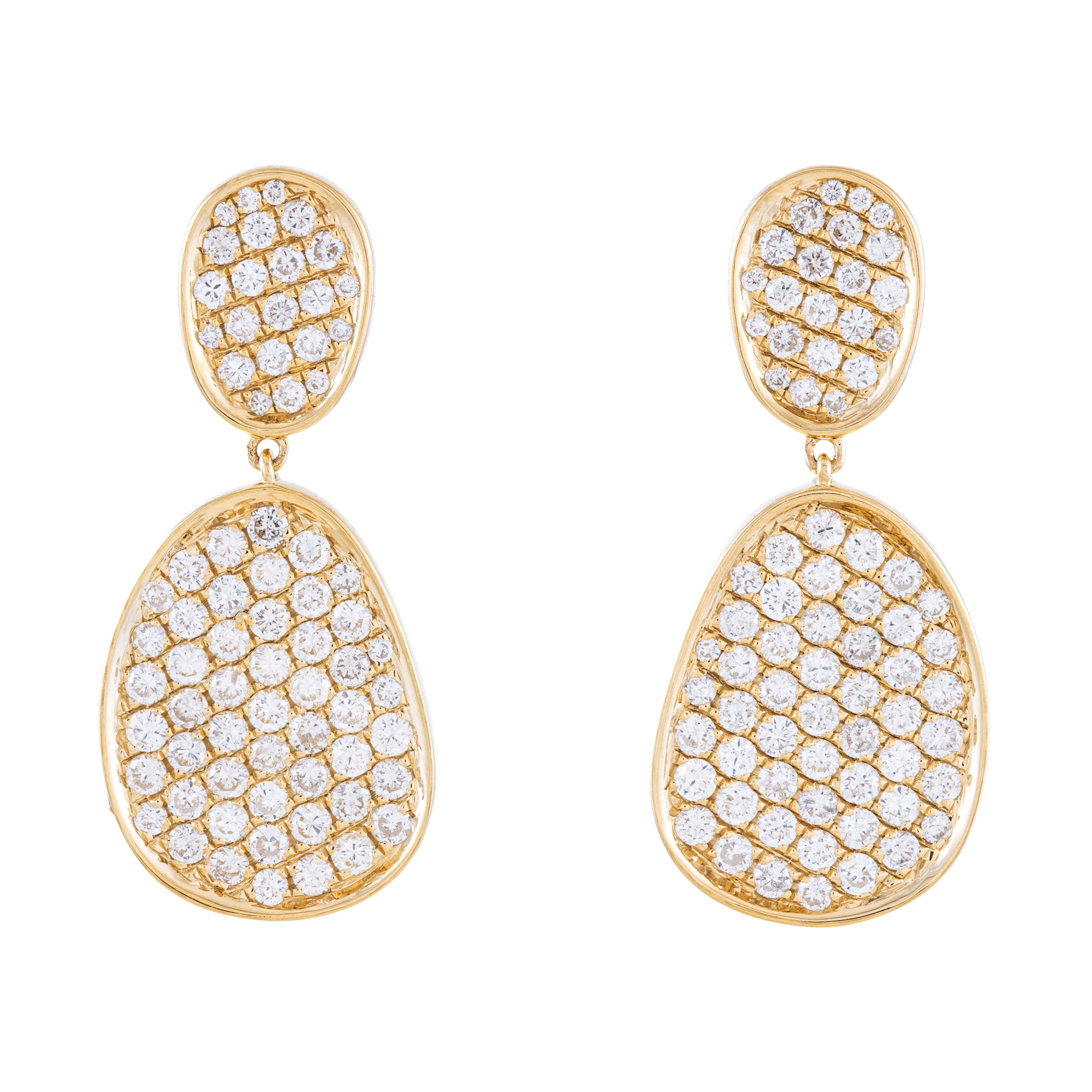 These 14K gold earrings are embellished with a pavé of 144 round brilliant cut diamonds, making these swinging chandelier earrings an iconic piece.